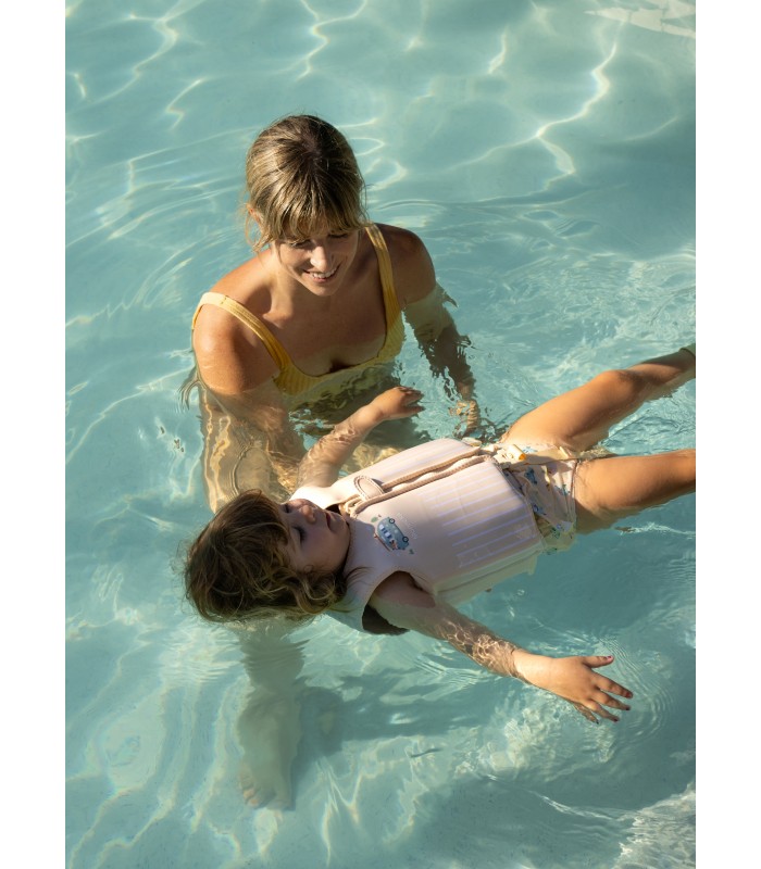 Το γιλέκο αποτελείται από 8 κομμάτια, το καθένα από αυτά με υλικά άνωσης στο νερό . Τα κομμάτια αυτά μπορούν να αφαιρεθούν και να επανατοποθετηθούν στο γιλέκο, δίνοντας στο μικρό σας την ευκαιρία να μάθει να κολυμπάει μόνο του με ασφάλεια.