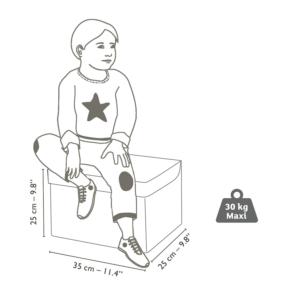 Υφασμάτινο κουτί αποθηκευσης από την εταιρία Djeco που θα γεμίσει το παιδικό δωμάτιο με χρώματα και ζωντάνια! Συμμαζέψτε τα παιχνίδια μέσα και καθίστε πάνω του για λίγη ξεκούραση! Αποθηκεύεται εύκολα καθώς κλείνει σε δύο απλά βήματα. Είναι κατασκευασμένο από non woven ύφασμα, το οποίο είναι ένα υλικό φιλικό στο περιβάλλον, υπόαλλεργικο, αναπνεόμενο, αδιαβροχοποιημένο, με βαμβακερή αίσθηση και εξαιρετικά μαλακό δεν σχίζεται και έχει αντοχή στη χρήση. Διαστάσεις κλειστού προϊόντος: 36x26x3 εκ.