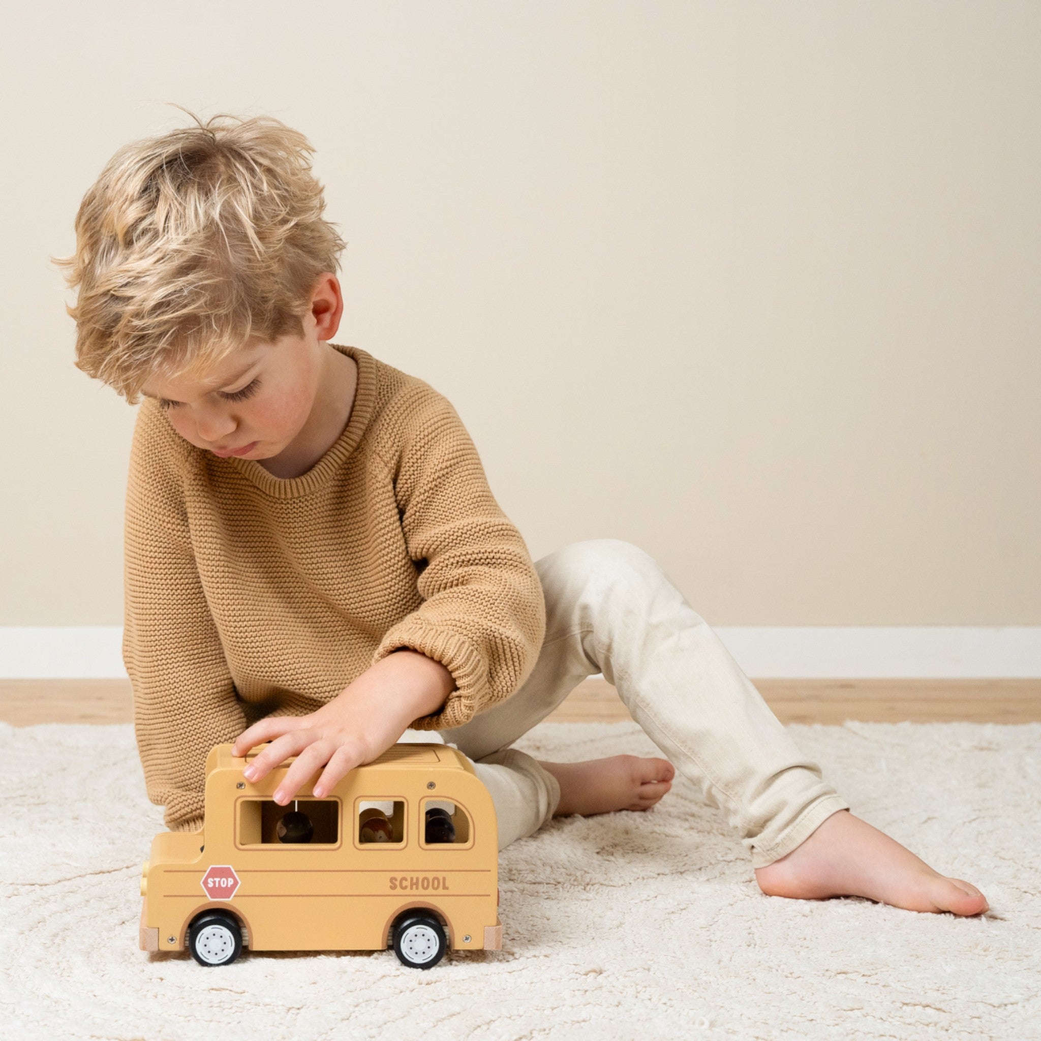 Οι τροχοί ομαλής κύλισης επιτρέπουν στο μικρό σας να διασχίζει αβίαστα το πάτωμα, μαζεύοντας φίλους από κάθε γωνιά του δωματίου. Η πόρτα και η οροφή του ξύλινου σχολικού λεωφορείου μπορούν να ανοίξουν και οι φιγούρες ταιριάζουν με το κουκλόσπιτο και άλλα playsets, όπως το αεροπλάνο και το αυτοκίνητο με τροχόσπιτο. Αφήστε το μικρό σας να απολαύσει το μαγικό ταξίδι της φαντασίας με αυτό το ευέλικτο ξύλινο σετ παιχνιδιού.