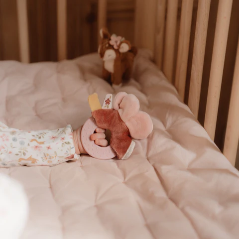 Αυτό το υπέροχο κουτί περιλαμβάνει τρία μαλακά προϊόντα που συνδυάζουν τον ύπνο, τις αγκαλιές και το παιχνίδι. Το απαλό πανάκι αγκαλιάς από μουσελίνα, με ένα γλυκό πουλάκι, είναι ιδανικό για αγκαλιές αλλά και για διασκεδαστικά παιχνίδια ενώ το χνουδωτό ελαφάκι είναι πάντα έτοιμο για μεγάλες αγκαλιές και φανταστικές περιπέτειες. Το σετ περιλαμβάνει επίσης έναν κρίκο οδοντοφυΐας που προσφέρει ανακούφιση όταν βγαίνουν τα πρώτα δόντια, ενώ το χαριτωμένο λουλούδι στον κρίκο ενισχύει τον συντονισμό χεριού-ματιού και την περιέργεια του μωρού.