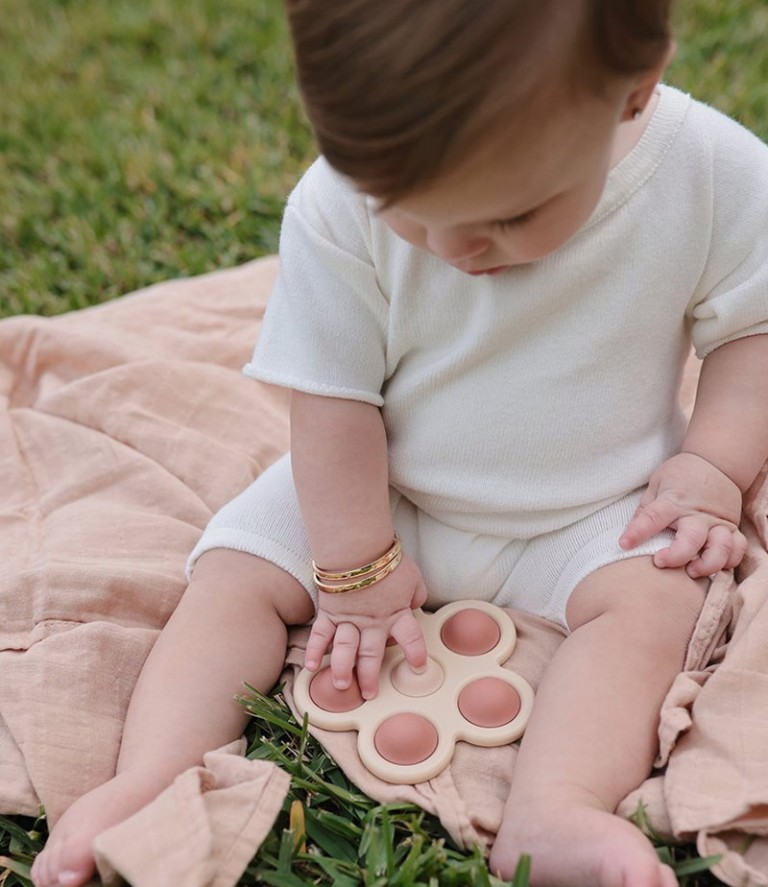 Mushie Βρεφικό παιχνίδι Flower Press Toy- Rose/Blush/Shifting Sand