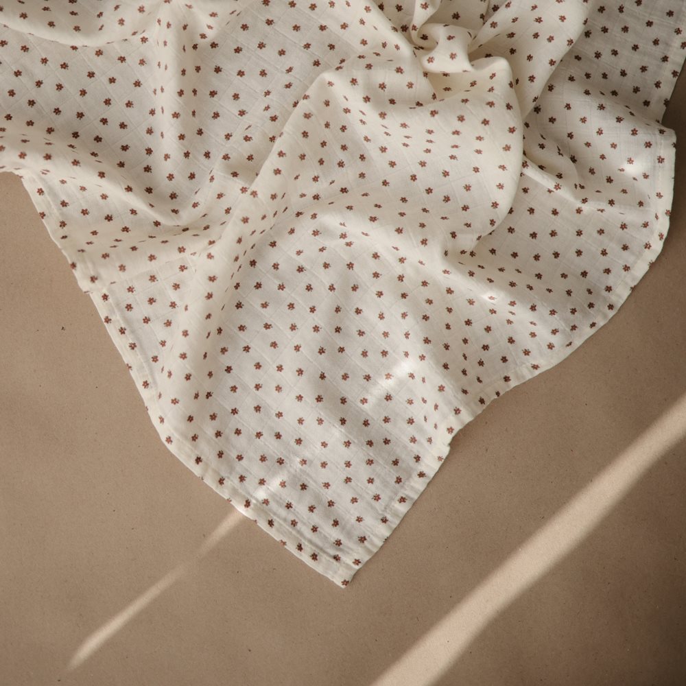 Η μουσελίνα είναι κατασκευασμένη από 100% οργανικό βαμβάκι και είναι προπλυμένη για να είναι πολύ απαλή πάνω στο ευαίσθητο δέρμα του μωρού.