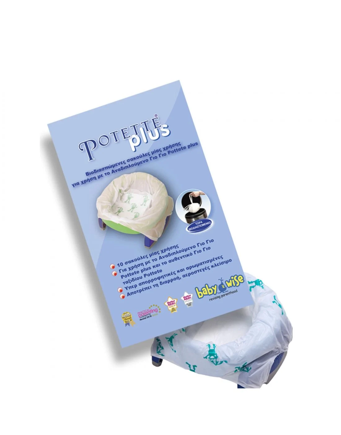 Στο γιογιό μπορείτε να έχετε τοποθετημένες μέχρι 3 σακούλες και κάθε φορά που θα χρησιμοποιείτε μία να την τυλίγετε και να την πετάτε. Φεύγοντας από το σπίτι, τοποθετείτε μία έως και τρεις σακούλες μιας χρήσεως και είναι έτοιμο για χρήση έκτακτης ανάγκης εκτός σπιτιού. Με το Potette Plus βοηθάτε το παιδί σας να συνηθίσει το γιογιό και εσείς να είστε ήσυχη ότι δεν θα υπάρξει πανικός αν είστε μακρυά από τουαλέτα. Η κάθε συσκευασία περιέχει 10 ανταλλακτικές σακούλες.