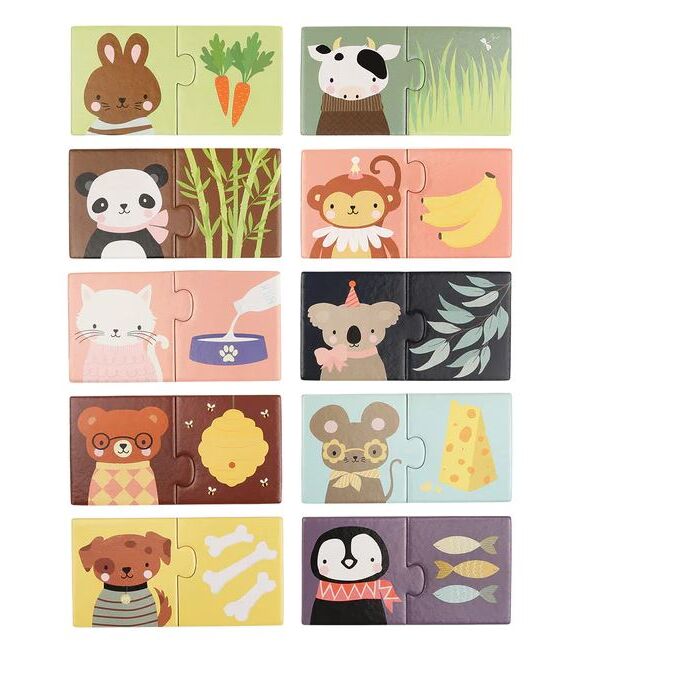 Περιεχόμενο: 10 κάρτες με ζωάκια και τα αντίστοιχα κομμάτια με τα φαγητά